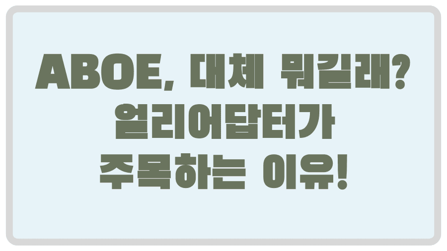 ABOE라는 이름, 혹시 처음 들어보셨나요? 요즘 IT 업계나 특정 분야에서 주목받고 있다는 소식을 접하셨다면, '대체 ABOE가 무엇이길래?' 하는 궁금증이 생기실 겁니다.마치 숨겨진 보석처럼, 아직은 대중에게 널리 알려지지 않았지만 뛰어난 기술력이나 독창적인 서비스로 빠르게 입소문을 타고 있는 브랜드들이 있죠.ABOE 역시 그런 잠재력을 가진 주역 중 하나일 수 있습니다.오늘은 이 신비로운 이름, ABOE에 대해 여러분과 함께 자세히 파헤쳐 보는 시간을 갖고자 합니다.과연 ABOE는 어떤 곳이고, 어떤 매력을 가지고 있기에 많은 얼리어답터들의 관심을 받고 있는 걸까요?ABOE라는 이름 뒤에 숨겨진 이야기와 그들이 제공하는 솔루션, 그리고 실제 사용자들의 생생한 후기까지, 이 글 하나로 ABOE에 대한..