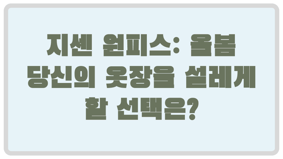 어느 날, 당신의 옷장 앞에서 잠시 망설인 적 없으신가요? 특별한 날, 혹은 그저 일상에 작은 설렘을 더하고 싶을 때, 여성스럽고 세련된 분위기를 완성해 줄 단 하나의 아이템을 찾게 되죠.바로 '지센 원피스'입니다. 지센은 특유의 우아함과 현대적인 감각으로 많은 여성들의 사랑을 받고 있는 브랜드인데요, 과연 지센 원피스는 어떤 매력을 가지고 있기에 그렇게 꾸준히 인기를 얻고 있는 걸까요?오늘 이 글에서는 지센 원피스의 다채로운 매력부터, 나에게 꼭 맞는 원피스를 고르는 방법, 그리고 센스 있는 코디 팁까지, 지센 원피스에 대한 모든 것을 낱낱이 파헤쳐 보겠습니다.지센 원피스, 스타일을 완성하는 비밀지센 원피스가 가진 독보적인 매력은 바로 관련 포스트 더 보기